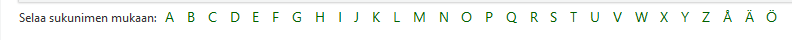 Asiakasta on mahdollista hakea myös selaamalla asiakkaita sukunimen alkukirjaimen perusteella.