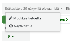 - Rivejä sivulla -valikosta voit määrittää, kuinka monta riviä näytetään per sivu. Joissain raporteissa on voitu määrittää valmiiksi, että näytetään tietty määrä rivejä.